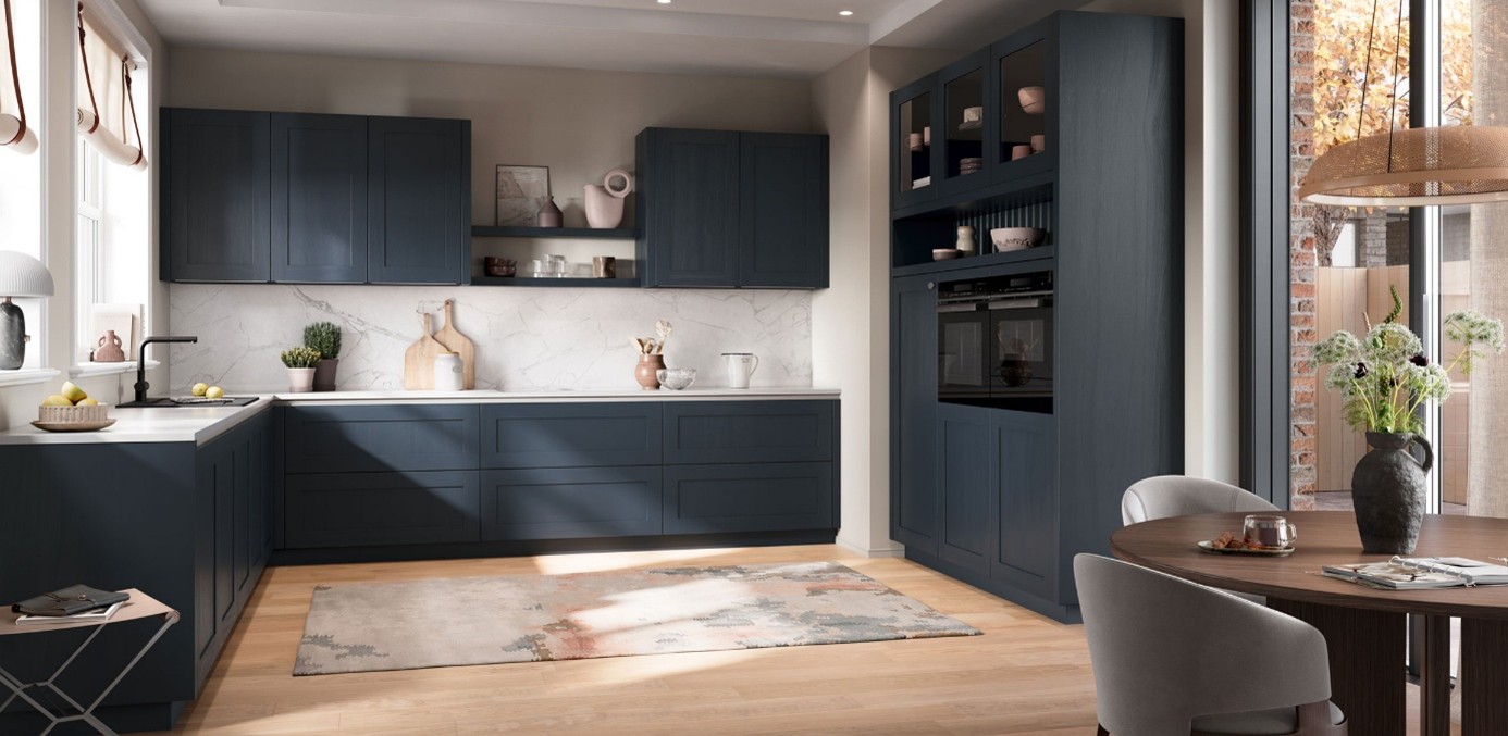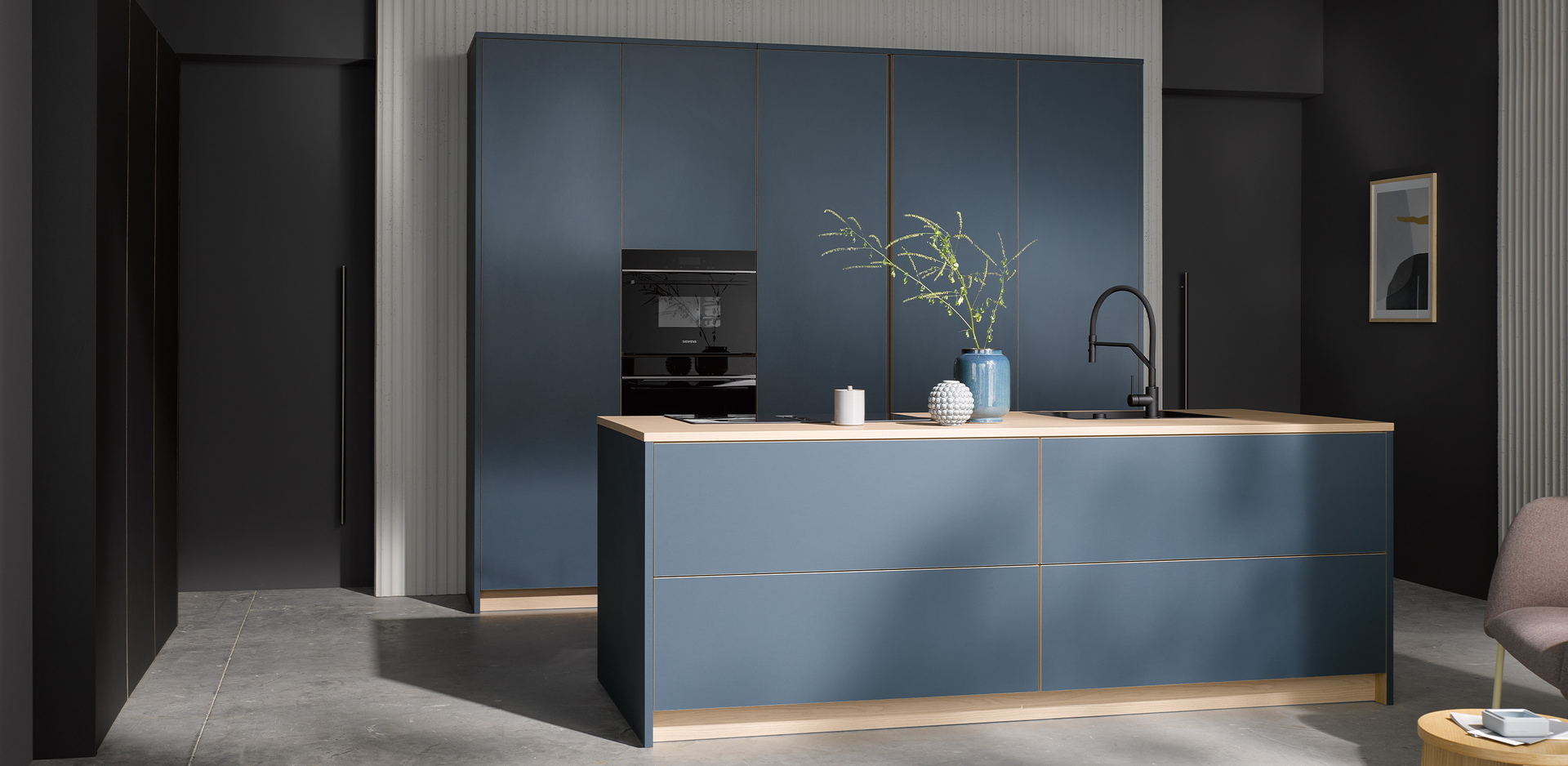 Lacivert veya gece mavisi, modern mutfaklarda sofistike bir görünüm kazandırır.
